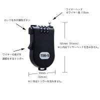 TARO'S 盗難防止ワイヤー巻き取り式ダイヤル、ナンバー式ロック セキュリティワイヤー 110cm SRL-100シリーズ タローズ